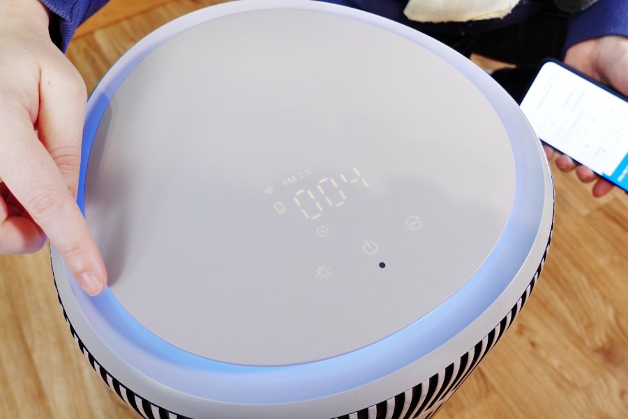 Pour configurer tout ça, vous avez accès à un panneau de contrôle tactile directement sur le dessus du purificateur. Vous pouvez aussi le régler à distance via l’application Air+ de Philips.