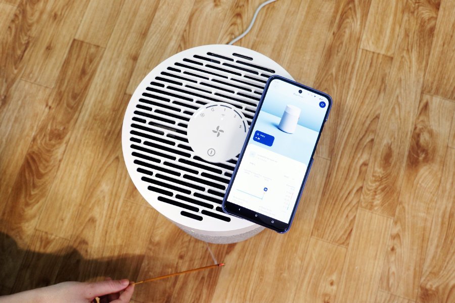 De plus, nous avons testé les fonctionnalités et les performances des purificateurs en les utilisant en situation réelle. Nous leur avons fait purifier une petite pièce de 10 m³ dans laquelle nous avons allumé un bâton d’encens et nous avons chronométré leur rapidité de purification des PM2.5 en nous basant sur les données de leur application.